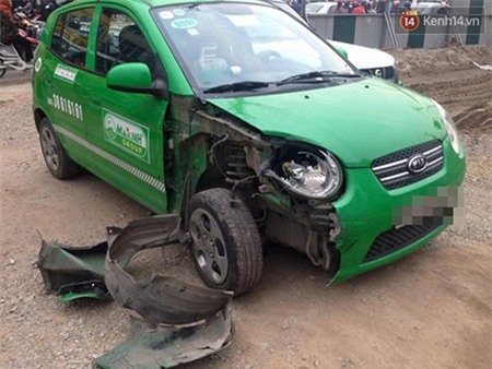 Hình ảnh chiếc taxi bị đâm - (Ảnh: Thế Long) |