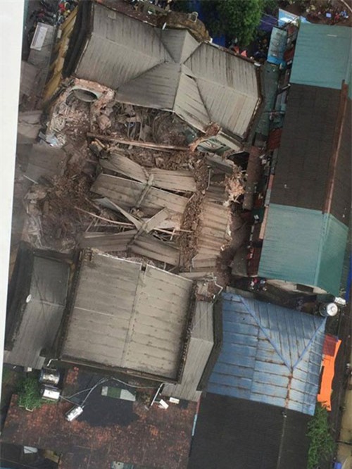 Căn nhà bị đổ sập cao 2 tầng, bị sập ở giữa. |