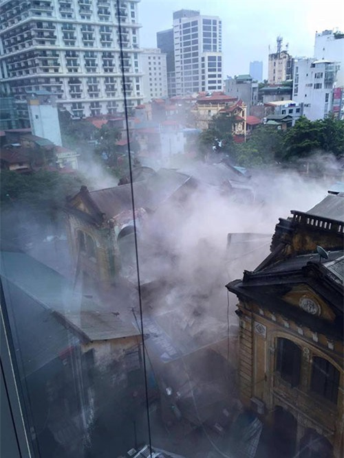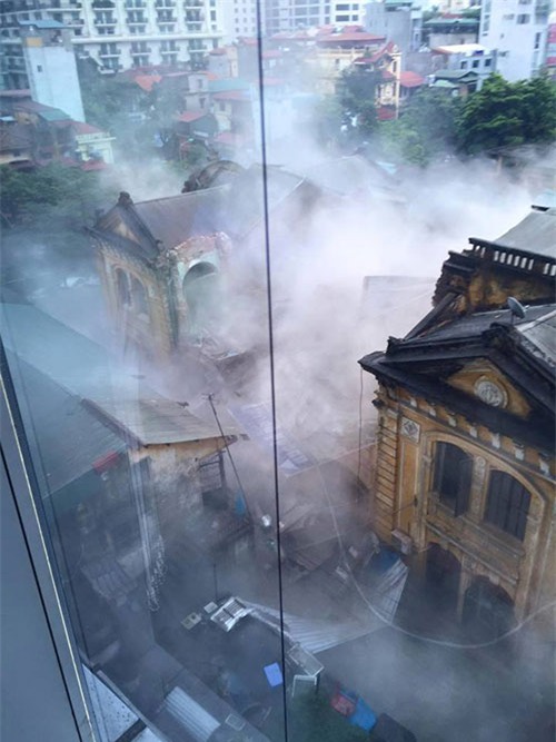 14h49: Trả lời câu hỏi của VOV.VN, Đội trưởng Thanh tra xây dựng Hoàn Kiếm cho biết, đây là biệt thự cổ thuộc diện bảo tồn, diện tích 300m2, khuôn viên 1000 m2. Công trình thuộc sự quản lý của Ban Quản lý Đường sắt.