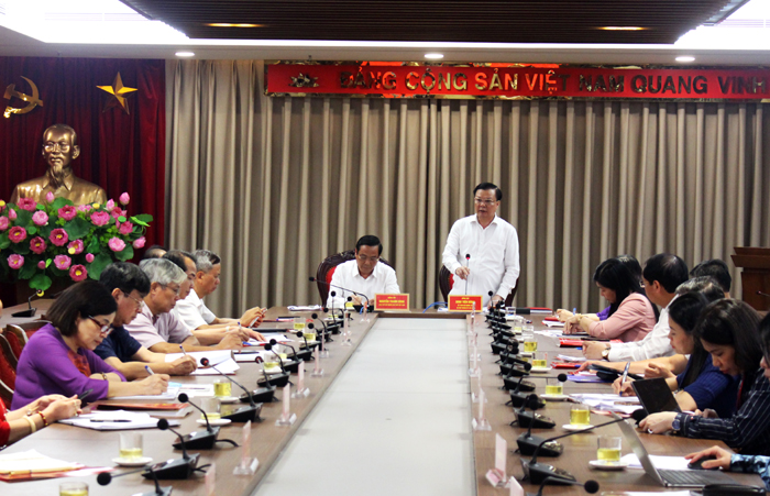Bí thư Thành ủy Đinh Tiến Dũng phát biểu tại buổi làm việc