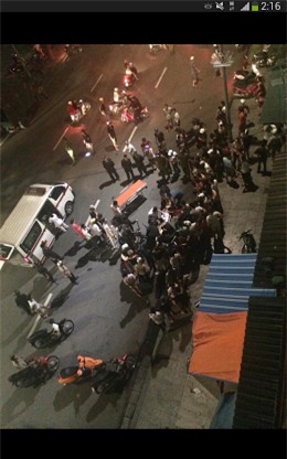 Sự việc thu hút sự chú ý của người đi đường dù lúc này đã rất muộn.
