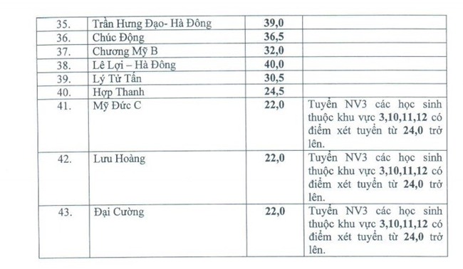 Theo đó, có 43 trong tổng số 108 trường THPT công lập ở Hà Nội đã có sự thay đổi về mức điểm chuẩn trúng tuyển theo hướng hạ xuống.