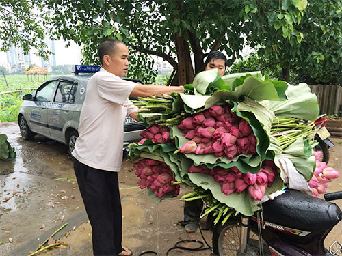 Hầu hết các tiểu thương thương tới tận đầm để lấy sen mang đi bán