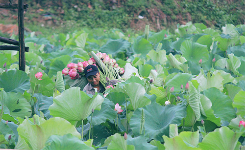 Người hái sen mắt phải nhanh nhạy để phát hiện ra những búp sen sẽ nở, ẩn mình phía sau tấm lá.