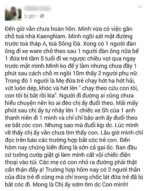 khoản facebook cho rằng đã xảy ra vụ bắt cóc để tìm hiểu sự việc.