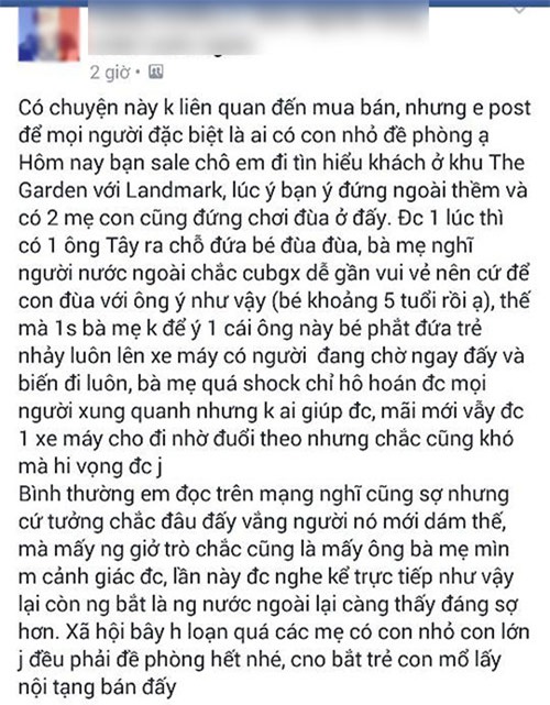 Cư dân mạng tới tấp cảnh báo bắt cóc