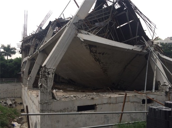 Hiện trường vụ sập Trường mầm non Vườn Xanh trên phố Trần Văn Lai- Mỹ Đình |