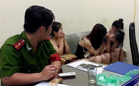 Các cô gái dịch vụ bị đưa về công an phường để làm rõ, xử lý. |