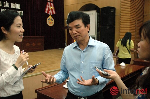 Ông Ngô Văn Chất - Trưởng phòng Quản lý thi và Kiểm định chất lượng – Sở GD&ĐT Hà Nội, trao đổi với báo chí.