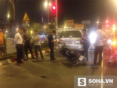 “Đúng lúc đèn tín hiệu giao thông chuyển màu đỏ, thanh niên đi xe máy va chạm với chiếc xe ô tô 29 chỗ ngồi, sau đó đâm vào chiếc xe Toyota 7 chỗ phía trước.