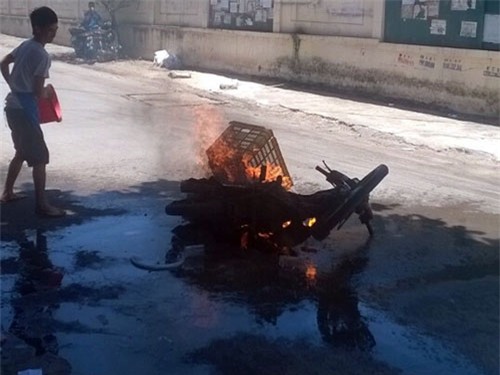 Anh Nguyễn Văn Linh (23 tuổi), người bán hàng nước ở gần khu vực xảy ra cháy xe kể lại, vào thời điểm trên, anh đang ngồi bán hàng thì thấy người dân hô hoán ở bên đường có xe máy cháy. Anh Linh nhìn ra thì thấy khói phát ra từ gầm xe máy. Ít phút sau ngọn lửa bốc lớn bao trùm lên toàn bộ chiếc xe.