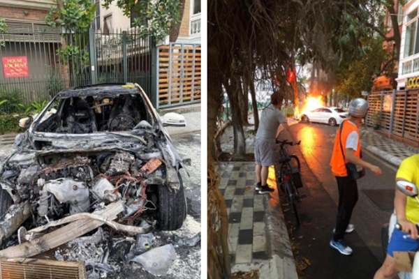 Công an quận Tây Hồ (Hà Nội) sáng 8/5 cho biết, xe ô tô hiệu Mercedes di chuyển trên đường Tô Ngọc Vân thì bất ngờ tông trúng gốc cây, sau đó xoay ngang đường rồi bốc cháy phần đầu.