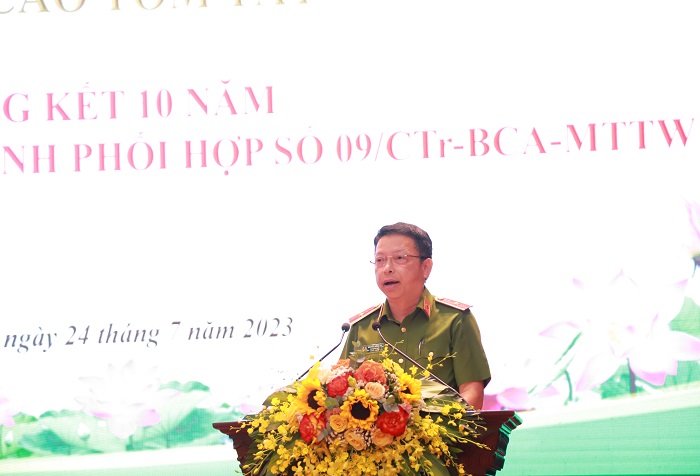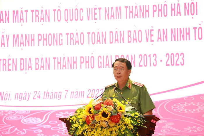 “Trong thời gian tới, tình hình thế giới, khu vực sẽ tiếp tục có nhiều diễn biến phức tạp, khó lường; các mối đe dọa an ninh phi truyền thống sẽ tiếp tục gia tăng. Ở trong nước, các yếu tố phức tạp về ANTT còn tiềm ẩn; công tác bảo vệ an ninh quốc gia, bảo đảm trật tự, an toàn xã hội xuất hiện nhiều vấn đề mới, phức tạp hơn. Trên địa bàn thành phố Hà Nội, tình hình ANTT cơ bản giữ vững ổn định, tuy nhiên, trên một số mặt còn tiềm ẩn những diễn biến phức tạp; hoạt động của một số loại tội phạm ngày cảng manh động, tinh vi, nguy hiểm, nhất là tội phạm hình sự, ma túy, tội phạm sử dụng công nghệ cao... đòi hỏi lực lượng Công an thành phố Hà Nội cần tăng cường công tác phối hợp chặt chẽ, hiệu quả hơn nữa với MTTQ và các tổ chức thành viên các cấp nhằm phát huy sức mạnh tổng hợp của cả hệ thống chính trị và của toàn dân trong phong trào toàn dân bảo vệ ANTQ, góp phần đảm báo an ninh, trật tự tại địa phương”, Thứ trưởng Lê Quốc Hùng nhấn mạnh.