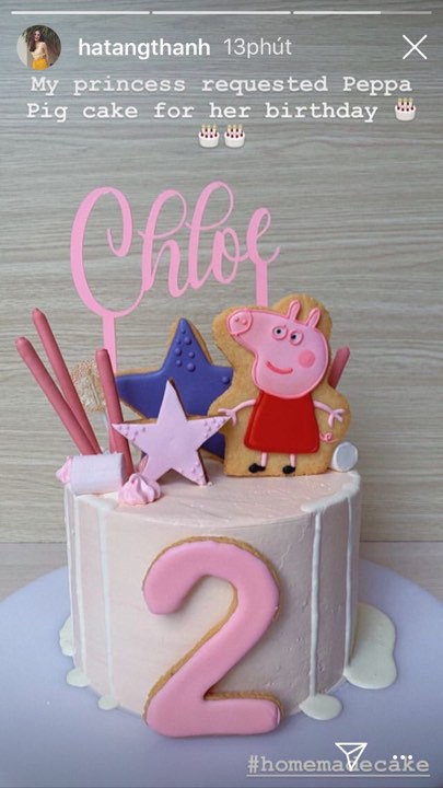 Mới đây, trên instagram cá nhân, Tăng Thanh Hà hạnh phúc khoe hình ảnh chiếc bánh kem do chính tay cô tự làm mừng sinh nhật con gái Chloe tròn 2 tuổi. Nàng "ngọc nữ màn ảnh Việt" chú thích: "My princess requested Peppa Pig cake for her birthday". (Tạm dịch: Công chúa của tôi muốn một chú lợn Peppa trong này sinh nhật).