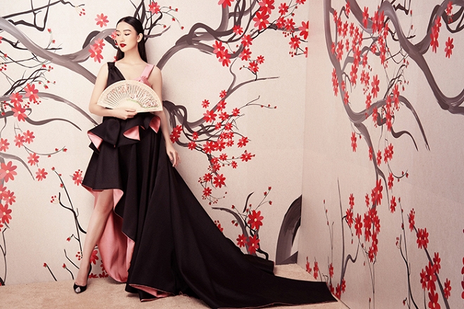 Mang đậm không khí ngày xuân, Hà Thu đã có sự biến hóa về mặt hình ảnh khi khoác lên mình vẻ ngoài đầy cuốn hút. Chính cách lựa chọn phục trang và make-up táo bạo đã mang đến cho cô hình ảnh người phụ nữ Á đông vừa truyền thống nhưng vẫn mang sự sắc sảo.