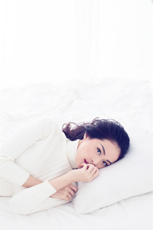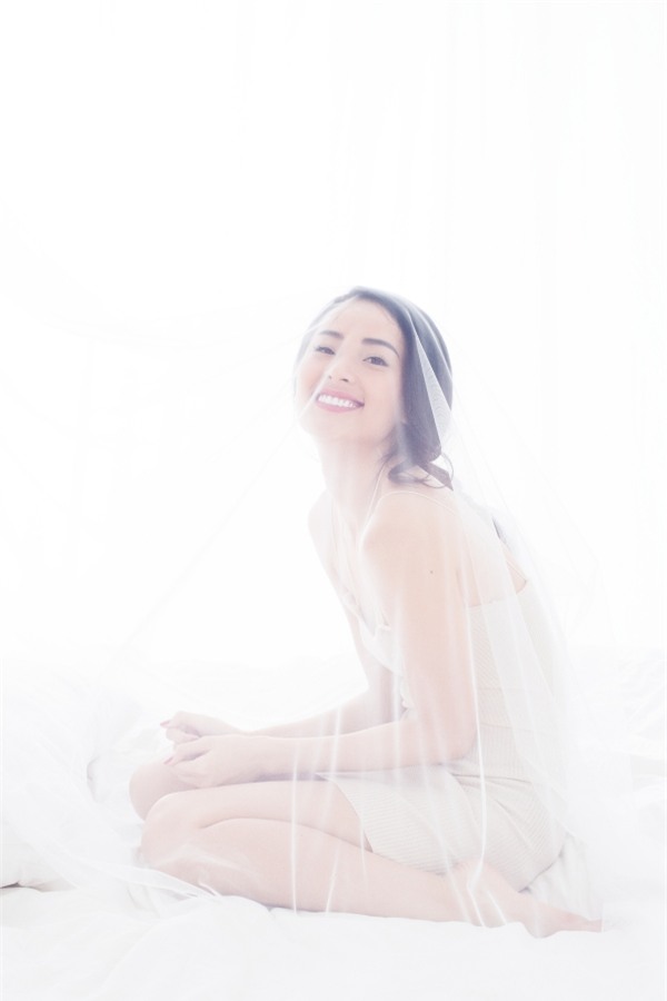 Chỉ với bối cảnh trên giường cùng trang phục trắng Hạ Vi khoe triệt để vẻ sexy nhưng vẫn toát lên sự "trong sáng".