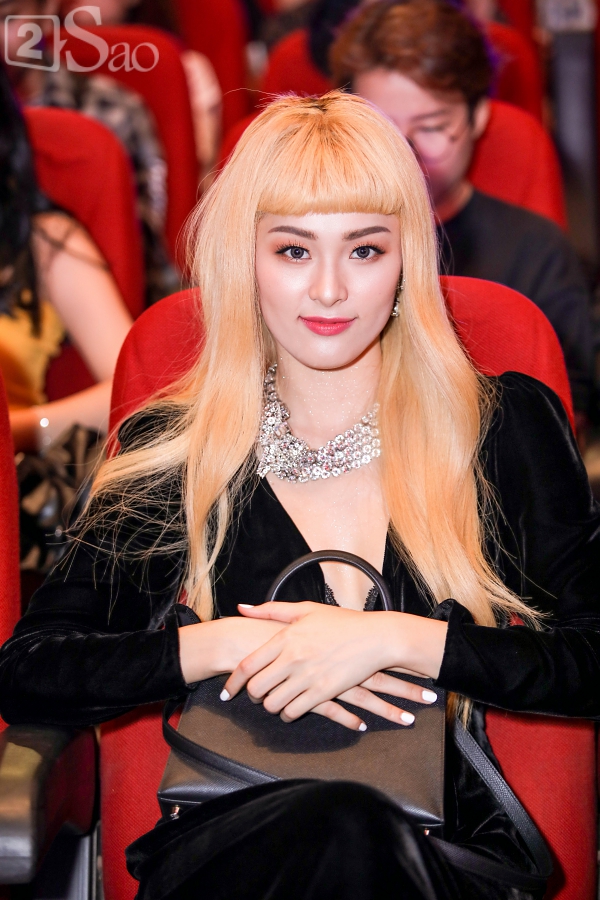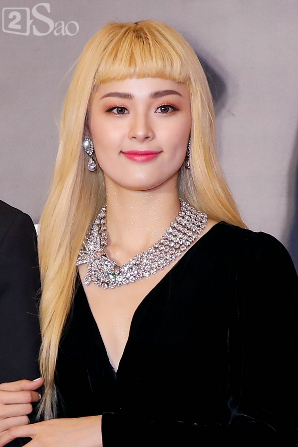 Xuất hiện trên thảm đỏ, Hạ Vi nhanh chóng trở thành tâm điểm thu hút ống kính truyền thông bởi diện mạo khác lạ. Nữ diễn viên diện đầm chất liệu nhung trendy kết hợp cùng phụ kiện lấp lánh. Điều khiến người hâm mộ chú ý chính là mái tóc vàng rực rỡ của người đẹp.