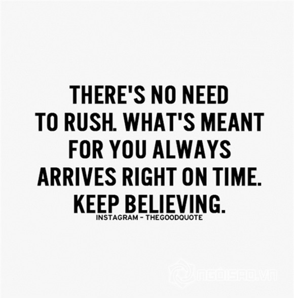 "Không cần phải vội. Cái gì dành cho bạn luôn đến đúng lúc. Hãy cứ tin".