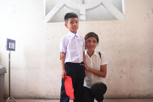 Hai mẹ con chị Hương vui vẻ trong ngày khai giảng năm học mới.