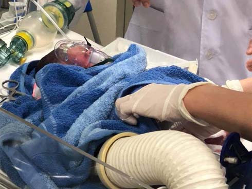 Các bác sĩ tiến hành mổ cấp cứu, hai cháu bé là Nguyễn Phạm Yến Chi (0,9 kg) và Nguyễn Hữu Quân (1,1 kg) lần lượt chào đời, nhưng do bị sinh non, nhẹ cân nên các cháu đều trong tình trạng nguy kịch.