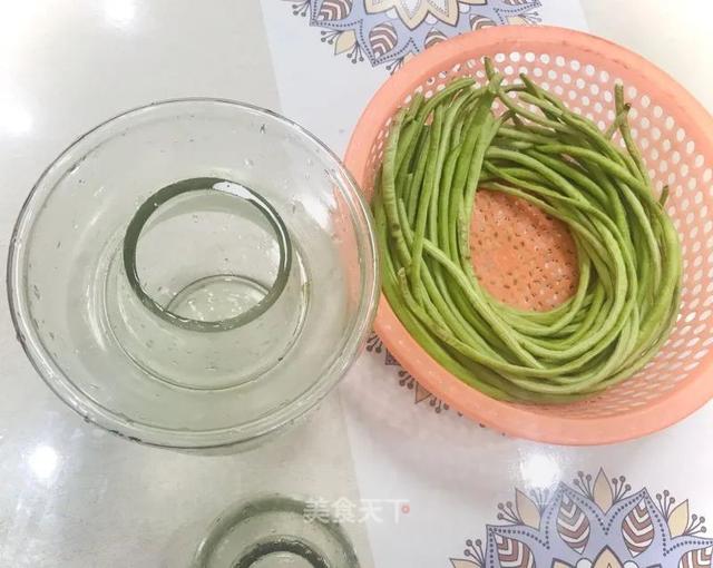 Cho thịt băm, tiêu, nước tương vào trộn đều, để nghỉ. Đậu đũa muối chua mang cắt nhỏ miếng vừa ăn. Gừng, ớt, tỏi, hành băm nhỏ. Thêm chút hành lá cắt nhỏ để tạo thêm màu sắc.