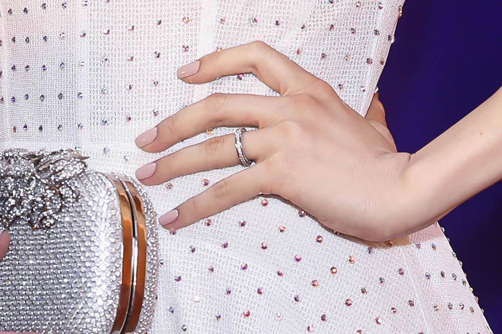 Cận cảnh chiếc nhẫn đính hôn đơn giản nhưng rất tinh tế của cặp đôi.