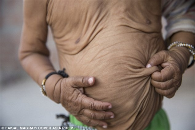 chị gái Anjali Kumari, 7 tuổi nhưng da đã nhăn nheo, xương khớp đau