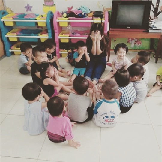 “Em còn nhớ rất rõ ngày đó, ngày em lần đầu tiên đứng lớp với vai trò chủ nhiệm, phụ trách chủ nhiệm nhóm lớp 2 tuổi. Ngày đầu tiên đi học của các con, dù đã lường trước được việc các con sẽ khóc rất nhiều, sẽ la hét rất nhiều, nhưng thật sự khi đối diện với tình huống lúc đó, em cực kì hoang mang. Vừa mới dỗ xong cháu này, cháu kia đã khóc um sùm lên, dỗ được cháu kia, cháu khác lại khóc nấc. Cứ như thế, cô phải tất bật theo 25 cháu suốt cả ngày.