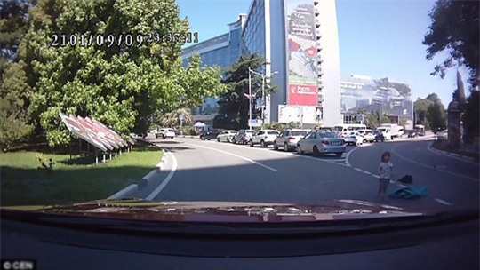Khi vụ việc xảy ra, một chiếc xe màu trắng đã phanh gấp để tránh đâm vào cậu bé, còn chiếc xe ghi hình thì phải đánh mạnh tay lái để không đâm vào cô bé.