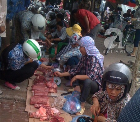 Khi chủ sạp thịt “chưa kịp thở” lập tức đã có rất nhiều người “bu” quanh và phiên chợ “độc nhất vô nhị” này bắt đầu…