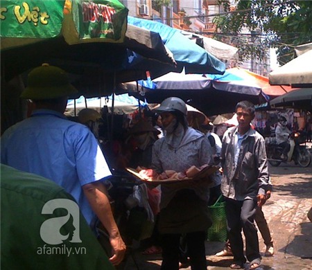 Một bảo vệ chợ cho biết: “Những sạp bán thịt tại chợ khoảng hơn 11h là họ rút về, từ khoảng hơn 12h, các chủ sạp khắp nơi tụ tập vào chợ bán thịt không đảm bảo về an toàn vệ sinh thực phẩm nên chúng tôi liên tục đuổi họ đi”. Vừa nói, người bảo vệ này lập tức dọa tịch thu số thịt bốc mùi ôi thiu thì mấy người phụ nữ liền “ôm hàng” chạy.