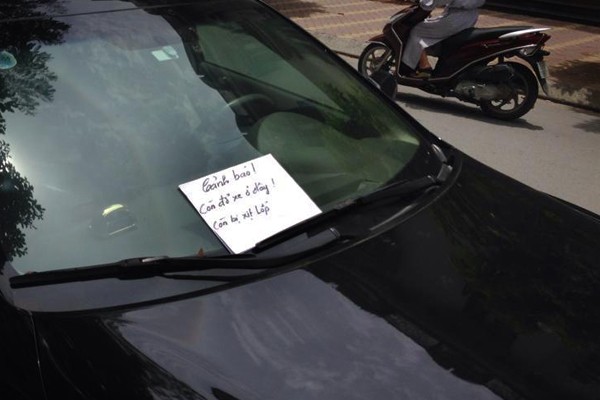 “Nhà tôi ở mà ông đỗ xe thế à? Đây là lần cuối tôi cảnh cáo ông. Ông nhốt cả nhà tôi. Không lấy được xe ra”. Đó là nội dung một tờ giấy mắng và cảnh cáo người đàn ông đỗ xe nhầm chỗ nhiều lần.