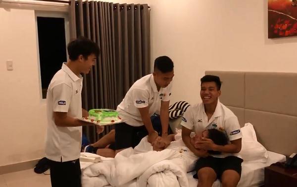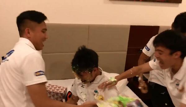 Clip: Xuân Trường bị đồng đội "trả thù" trong ngày sinh nhật.