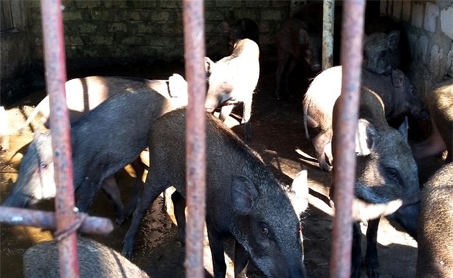 Trang trại của anh Long hiện có 30 con lợn rừng lai trưởng thành chuẩn bị xuất chuồng. Ảnh: Nguyễn Dương. |