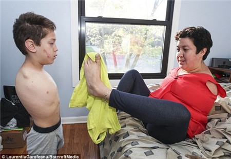 Dù mắc dị tật không có tay nhưng hai mẹ con cô Linda, bé Timmy vẫn sử