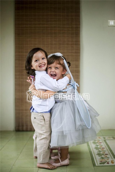 Hai nhóc sinh đôi nhà Hồng Nhung ôm nhau cười rạng rỡ ngày sinh nhật