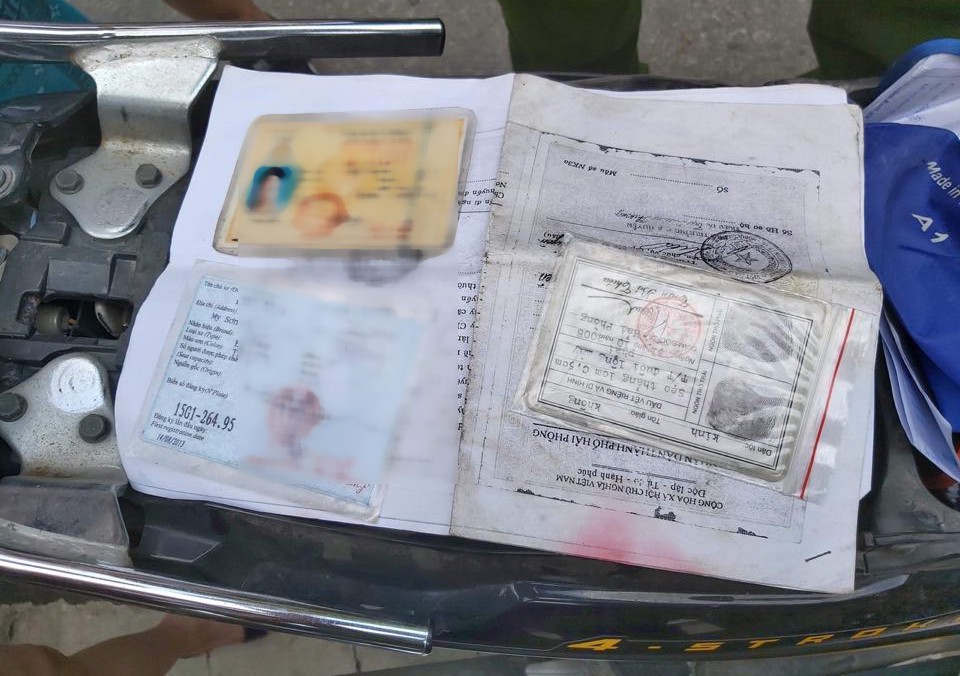Kiểm tra trong cốp xe, công an phát hiện có chứng minh thư, bằng lái xe, giấy phép lái xe mang tên Đoàn Văn N. (SN 1983, xã Ngũ Lão, Thủy Nguyên).