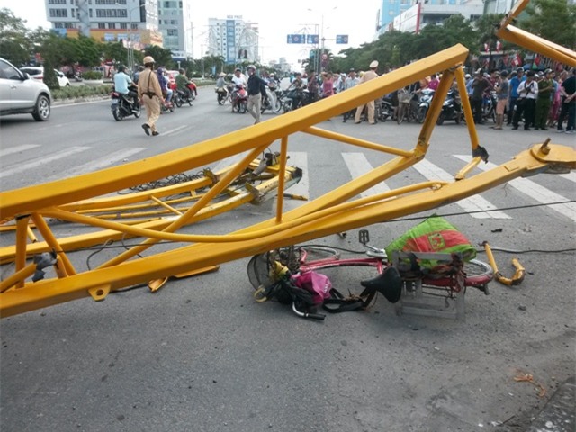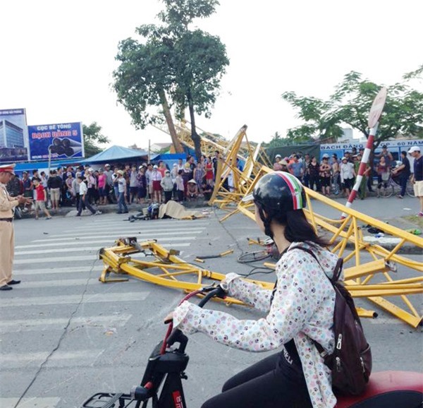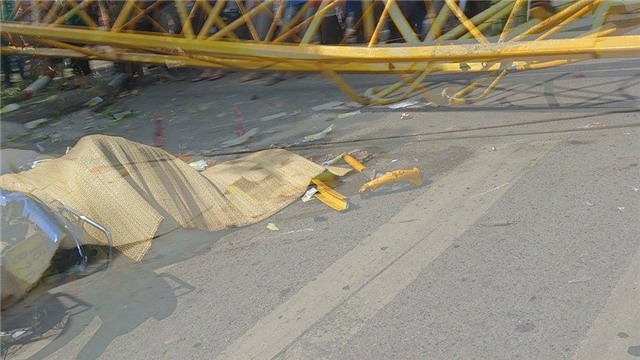 Cánh tay cẩu bất ngờ đổ sập khiến nhiều người thương vong. |