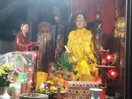 bức tượng Đức Linh Lang Đại vương nằm ở cánh cửa của điện thờ nơi có bức
