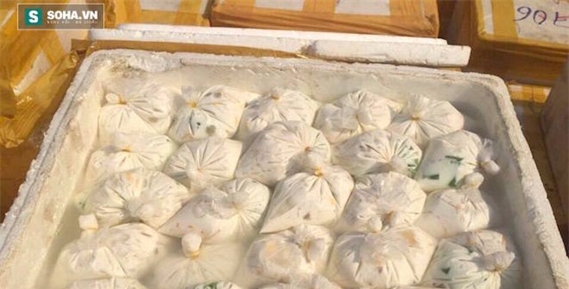Kiểm tra chiếc xe khách nghi vấn, cảnh sát phát hiện trên xe chở 63 thùng xốp chứa hàng ngàn gói chè thập cẩm ướp lạnh, không rõ nguồn gốc xuất xứ.