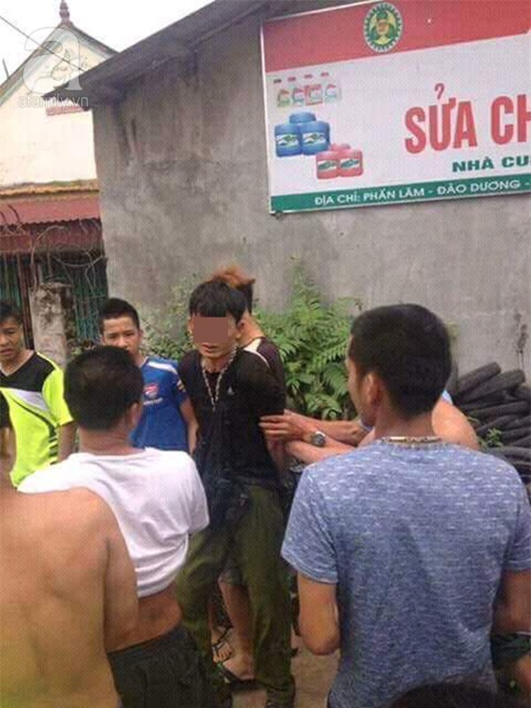 niên trên người dính nhiều máu do bị người dân vây bắt và hành hung.