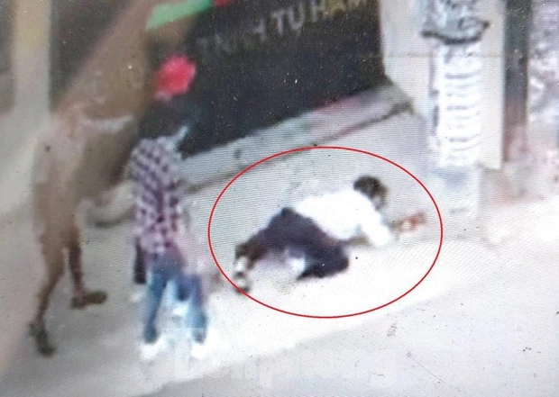 Hình ảnh cho thấy, người mặc áo bảo vệ đi lùi lại phía sau để cố gắng tránh đòn. Một thanh niên dùng tay đấm vào mặt, sau đó dùng chân đá mạnh vùng hàm mặt khiến nạn nhân ngã nhào xuống đất. Phát hiện vụ việc, người dân chạy đến ngăn cản nên hai thanh niên rời đi, nạn nhân đứng dậy trong tình trạng loạng choạng.