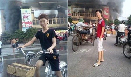 Bức ảnh hai thanh niên chụp trong lúc trung tâm thương mại đang cháy lớn |