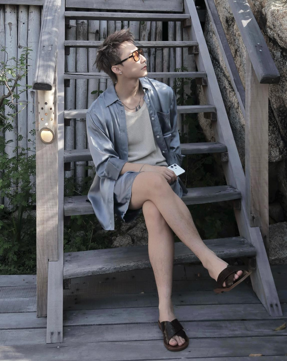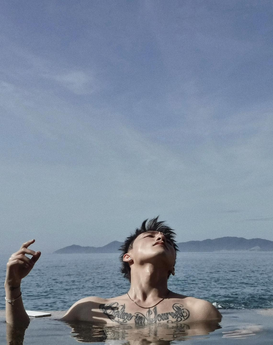 Nam ca sĩ cũng không quên khoe khéo chiếc body vừa "độ" nhờ chăm chỉ tập gym, rèn luyện thể thao cùng chế độ ăn khoa học.