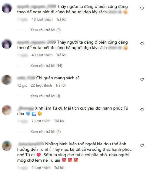Hải Tú bất ngờ trở thành tâm điểm bàn tán về hành động được cho là "đánh dấu chủ quyền" với Sơn Tùng M-TP. Dưới bài đăng của "nàng thơ", một netizen để lại bình luận: "Thấy người ta đăng ảnh ở biển cũng đăng để người ta biết đi cùng hả người đẹp?" Phía Hải Tú vẫn giữ thái độ im lặng, không lên tiếng trước loạt bình luận này.