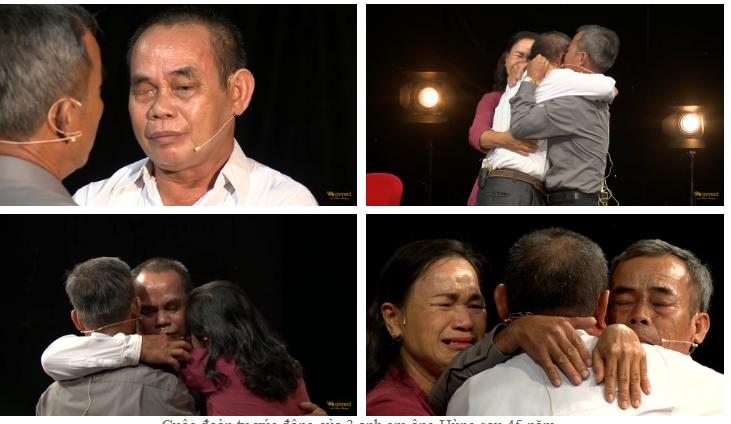 Và rồi sau 45 năm, ông Khoa, ông Hùng, bà Mai mới được gặp lại nhau, siết chặt cái ôm xúc động. Nghe những điều anh trai kể về mẹ, ông Hùng bật khóc: "Anh! Em có lỗi với mẹ".