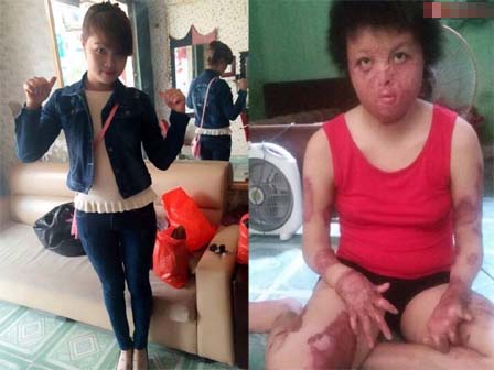 Đó là câu chuyện buồn của chị Nguyễn Thùy Dung (SN 1994 -Thôn 3, Mã Lại, xã Chàng Sơn, Thạch Thất, Hà Nội), ai nghe qua cũng đều bức xúc. Đang từ một cô gái xinh đẹp bỗng chốc Dung bị hủy hoại nhan sắc bởi chính người chồng “đầu ấp tay gối” của mình khiến toàn thân biến dạng.