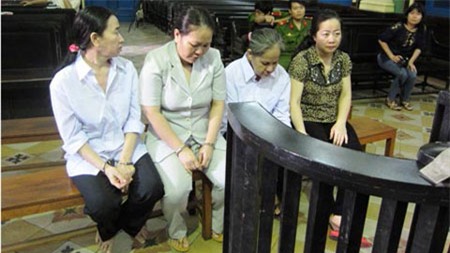 Nghiêm Xuân Thảo Ly (ngoài cùng, bên phải) và đồng bọn tại TAND TP.HCM |