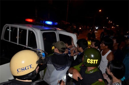 được đưa về trụ sở lấy lời khai. Sự việc thu hút hàng trăm người dân