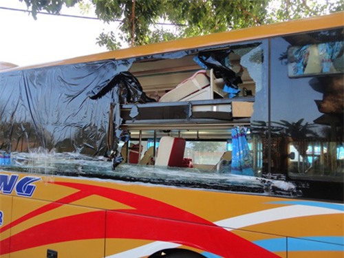 Riêng xe của hãng Định Hào (ở thị trấn Krông Năng, Đắk Lắk) chạy tuyến Đắk Lắk - Bắc Giang bị ném vỡ 2 tấm kính, một hành khách bị thương ở phần đầu.